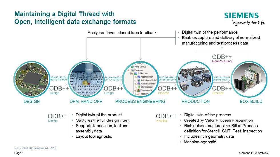 西門子最新的數(shù)據(jù)交換格式 ODB++Process 有助于在不同機器、軟件供應商和獨立流程之間實現(xiàn)過程工程信息的開放式交換,從而加快新產(chǎn)品導入 (NPI) 并實現(xiàn)"首次即成功"的制造。