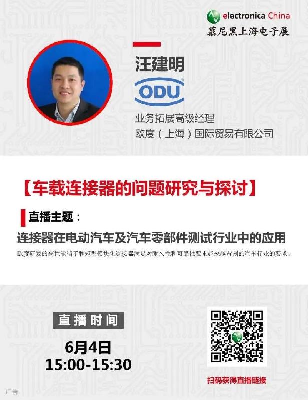 6月4日下午15時(shí)(星期四),慕尼黑上海電子展主辦的“車載連接器的問題研究與探討”在線論壇ODU直播將正式開啟!