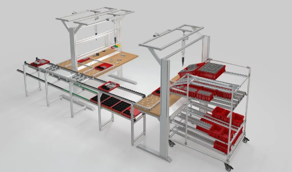 item 的工作臺系統(tǒng)可與 D30 精益生產(chǎn)系統(tǒng)完美兼容,無須昂貴的自動化設備投資,即可擁有低成本的簡便自動化方案,并且非常容易根據(jù)新的工作流程進行修改。