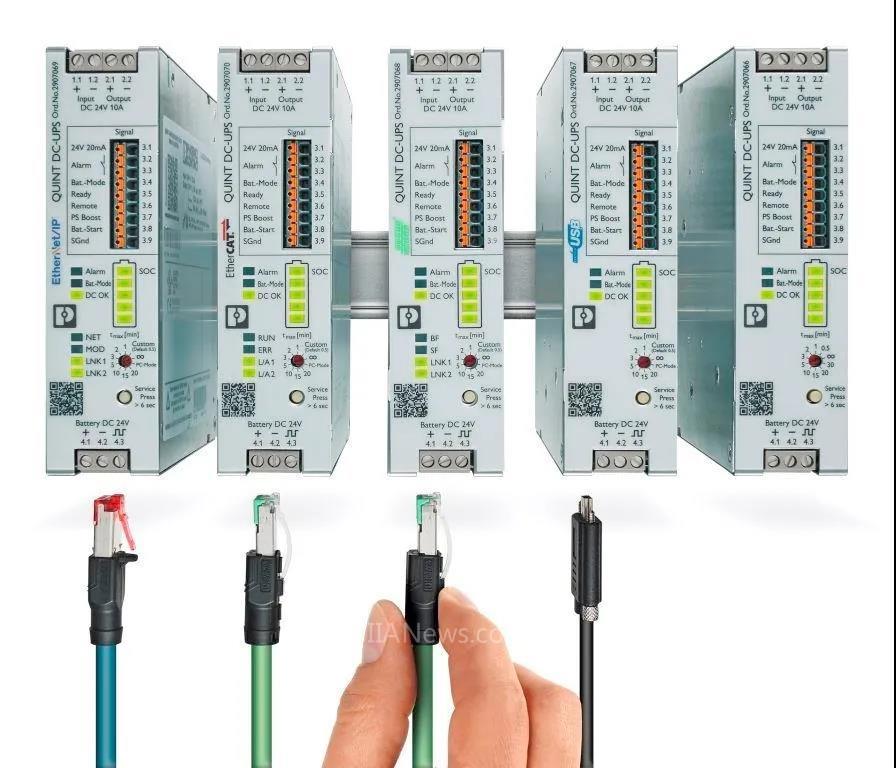 菲尼克斯電氣QUINT 系列DC UPS和儲能模塊可以完美解決UPS應(yīng)用中所有的安全隱患,QUINT 系列DC UPS基于IQ Technology提供強大的電池管理技術(shù)。支持SOH(壽命狀態(tài)),SOC(充電狀態(tài))監(jiān)控,可通過PROFINET,EtherNET/IP,EtherCAT,USB四種工業(yè)網(wǎng)絡(luò)接口隨時告知工程師儲能模塊的壽命、充放電電壓、電流、電池容量等關(guān)鍵信息,工程師可以利用工業(yè)以太網(wǎng)實時監(jiān)控電池的運行情況,一旦出現(xiàn)風(fēng)險能夠及時維護,避免電池?fù)p壞。QUINT DC UPS可以兼容搭配各類儲能模塊,工程師可以根據(jù)現(xiàn)場應(yīng)用情況選擇壽命長的鋰離子電池,寬溫工作的閥控式鉛酸電池還有最大緩沖時間的鉛酸電池,構(gòu)建安全合適的UPS系統(tǒng)。