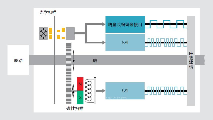 有一個磁體和一個光學(xué)測量系統(tǒng),它將這兩個單元合為一體,冗余雙通道信號使其達(dá)到最高安全等級要求,能同時給出SSI和增量型信號。