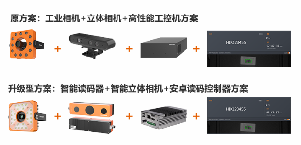 升級(jí)版方案智能讀碼一體化套件內(nèi)置深度學(xué)習(xí)芯片,搭載了??瞪疃葘W(xué)習(xí)讀碼算法,可直接輸出包裹條碼信息,新一代雙目立體相機(jī)將體積測(cè)量算法內(nèi)置于相機(jī)內(nèi)部,可通過(guò)SDK接口直接獲取體積數(shù)據(jù),無(wú)需后端PC處理。方案對(duì)工控環(huán)境的需求大幅降低,采用一顆安卓主板控制器即可完成數(shù)據(jù)融合輸出。