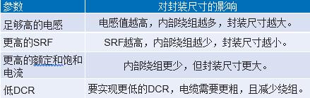 表2顯示在通過(guò)權(quán)衡這些對(duì)立要求,以最小化電感尺寸時(shí),會(huì)因?yàn)槲锢硐拗疲▋?nèi)部繞組)等受到限制。