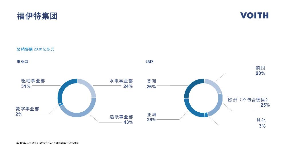 海德海姆 盡管市場環(huán)境極具挑戰(zhàn)性,福伊特集團在2019/20財年的前六個月(2019年10月至2020年3月末)仍取得了可觀的業(yè)績。自三月下旬起,福伊特的業(yè)績開始受到新冠疫情的不利影響。人際接觸受到限制,由此導致生產(chǎn)停滯,部分客戶因而缺乏投資意愿。