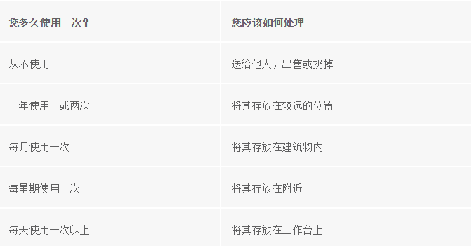 另外,員工還要記錄這些物料的使用頻率,根據(jù)這些信息,可以決定如何處理某一特定物料,如下表所示:
