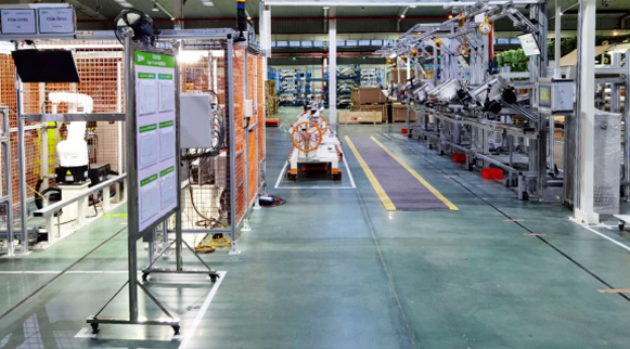 珞石機(jī)器人根據(jù)客戶現(xiàn)場情況,全新設(shè)計(jì)布局,進(jìn)行產(chǎn)線對接及自動化部署。部署后的產(chǎn)線包括零件預(yù)裝,框架組裝,前保險杠組裝,合裝,及兩條搭載AGV的配件組裝等工藝流程,生產(chǎn)組裝出的產(chǎn)品最終會被運(yùn)送到全球頭部汽車制造商工廠進(jìn)行整車裝配,匹配該汽車廠商未來5種車型。