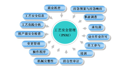 “過程安全管理是指應(yīng)用管理原則和管理系統(tǒng),識別、了解和控制工藝危險,達到預(yù)防工藝相關(guān)的傷害及事故的目的?!薄獊碜訡CPS(Center for Chemical Process Safety)。過程安全管理PSM涉及到14個關(guān)鍵要素,其中與機械安全風(fēng)險評估相呼應(yīng)的叫做工藝危險分析(PHA),所采用的方法即是危險與和操作性分析HAZOP。