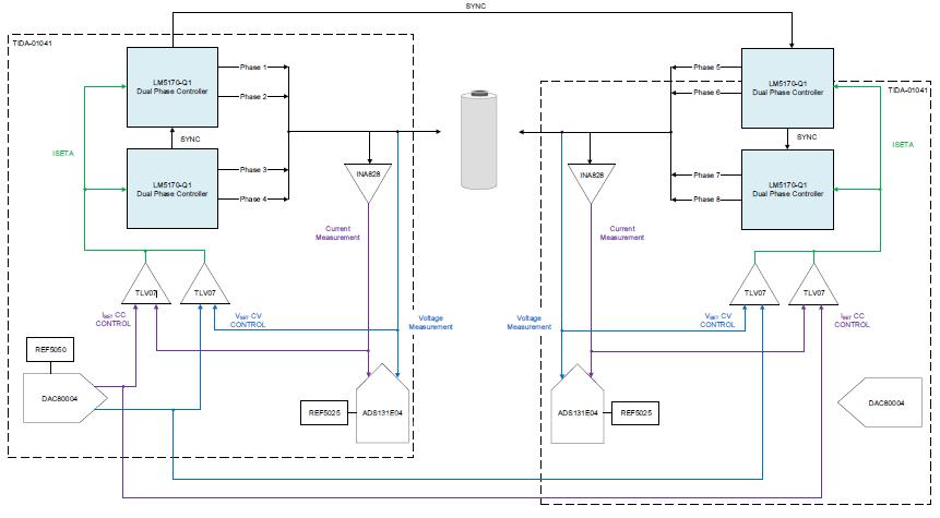 此特定方案通過(guò)將幾個(gè)關(guān)鍵的TI技術(shù)結(jié)合在一起,為需要更高電流或多相的應(yīng)用創(chuàng)建了一個(gè)可修改的平臺(tái),展示了構(gòu)建一個(gè)具有成本效益的測(cè)試解決方案的可行性。這一靈活、具有前瞻性的解決方案不僅滿足了當(dāng)今的需求,而且預(yù)測(cè)了未來(lái)汽車電池的增長(zhǎng)趨勢(shì),這將很快增加對(duì)測(cè)試儀電流能力超過(guò)50A的需求。