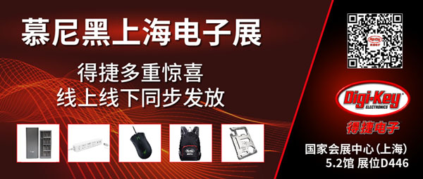 全球領(lǐng)先的電子元器件分銷(xiāo)商 Digi-Key Electronics 很高興地宣布回到 2020 慕尼黑上海電子展。該展會(huì)是一個(gè)引領(lǐng)創(chuàng)新電子制造的平臺(tái),將于 2020 年 7 月 3 日至 5 日于中國(guó)上海國(guó)家會(huì)展中心舉行。