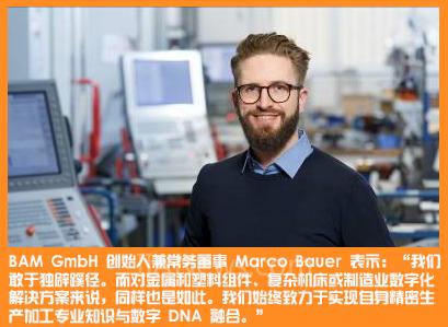 總部位于德國小鎮(zhèn) Weiden 的 BAM GmbH 常務(wù)董事 Marco Bauer 確信,如果沒有數(shù)字化和自動化,任何制造公司都不會生存太久。因此,從公司網(wǎng)店到機(jī)器人輔助生產(chǎn)單元,他采用了一整套數(shù)字化和自動化處理系統(tǒng)。這套高效系統(tǒng)的一個關(guān)鍵組成部分就是使用 BAM 從 CAD/CAM 合作伙伴 OPEN MIND 引進(jìn)的 hyperMILL? 的自動化 CAM 編程。
