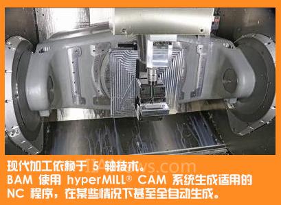 長期以來,BAM 一直使用 CAD/CAM 軟件編程。公司持續(xù)不斷提高 5 軸加工水平,現(xiàn)有 12 個加工中心,其中 11 個采用 5 軸技術(shù)。2013 年,管理層決定,從 OPEN MIND Technologies AG 引進(jìn) hyperMILL? CAM 解決方案。在加入 BAM 之前,生產(chǎn)主管 Stefan Bauer 就有使用這套軟件的成功經(jīng)驗。他認(rèn)為,“hyperMILL? 是最好的 5 軸加工操作編程軟件。這是因為,始終都有多種傾斜策略可供使用,讓我能夠選擇適用于各種幾何形狀及機(jī)床運(yùn)動配置的解決方案?!?但在他看來,由于用戶界面清晰直觀,讓人一打開軟件就明顯體會到 hyperMILL? 的強(qiáng)大優(yōu)勢,包括卓越的機(jī)床仿真以及碰撞檢查和避讓功能等。