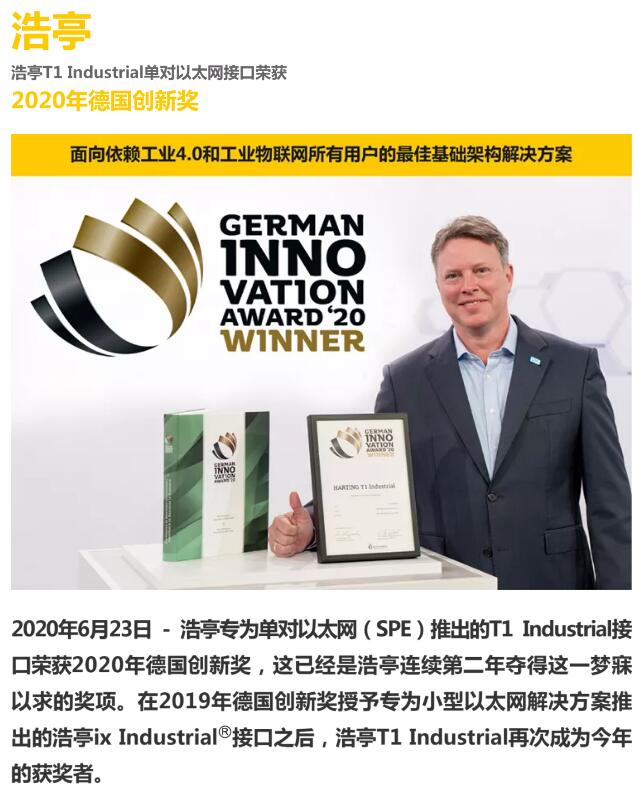 浩亭技術(shù)集團(tuán)很早就意識(shí)到單對(duì)以太網(wǎng)的潛力,并為所有依賴工業(yè)4.0和工業(yè)物聯(lián)網(wǎng)的用戶開發(fā)出最佳的基礎(chǔ)架構(gòu)解決方案。為了建立單對(duì)以太網(wǎng)的行業(yè)統(tǒng)一標(biāo)準(zhǔn),浩亭在標(biāo)準(zhǔn)制定過程中發(fā)揮了積極的開拓性作用,并根據(jù)IEC 63171-6實(shí)現(xiàn)該接口的標(biāo)準(zhǔn)化,并讓該標(biāo)準(zhǔn)獲得國際布線標(biāo)準(zhǔn)ISO/IEC 11801和TIA TR 42.7的收錄。創(chuàng)新始終是浩亭技術(shù)集團(tuán)75年來的核心事務(wù)所在,而德國創(chuàng)新獎(jiǎng)則再次突顯了這一事實(shí)。