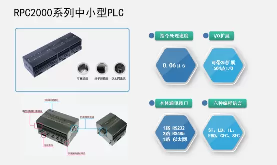 RPC2000稍早于RPC3000誕生,可以覆蓋中小型PLC應(yīng)用領(lǐng)域,擁有高速CPU,IO擴(kuò)展能力強(qiáng),單CPU可處理 500 多個(gè) IO 點(diǎn)。并輔助各種通信接口,CPU本體帶有 4個(gè)通信口,三個(gè)串口,一個(gè)以太網(wǎng)網(wǎng)口。編制語(yǔ)言符合IEC61131-3國(guó)際標(biāo)準(zhǔn),可以用6種語(yǔ)言進(jìn)行編程。