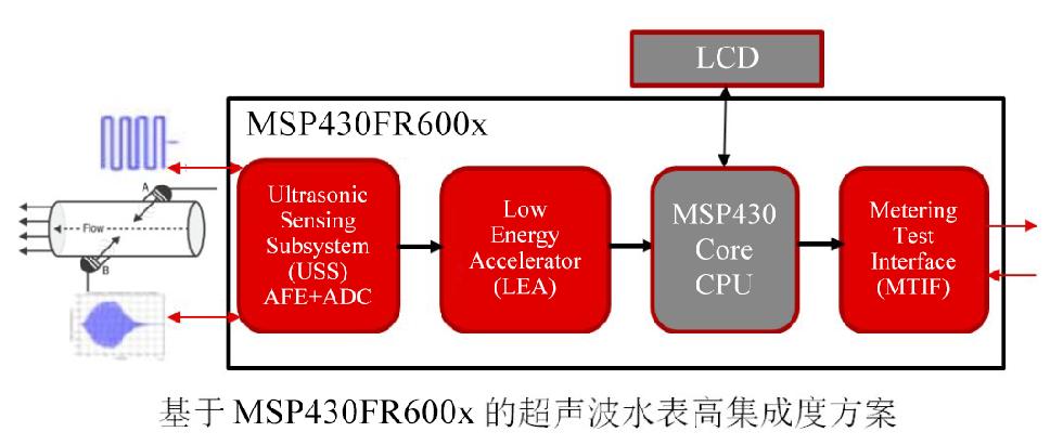 MSP430FR6007是集成了USS(Ultrasonic sensing sub-system)的微處理器,能夠獨立完成超聲波發(fā)送,采集和數(shù)據(jù)處理等功能。是一個高度集成化的高精度、低功耗的超聲波水表熱表解決方案。