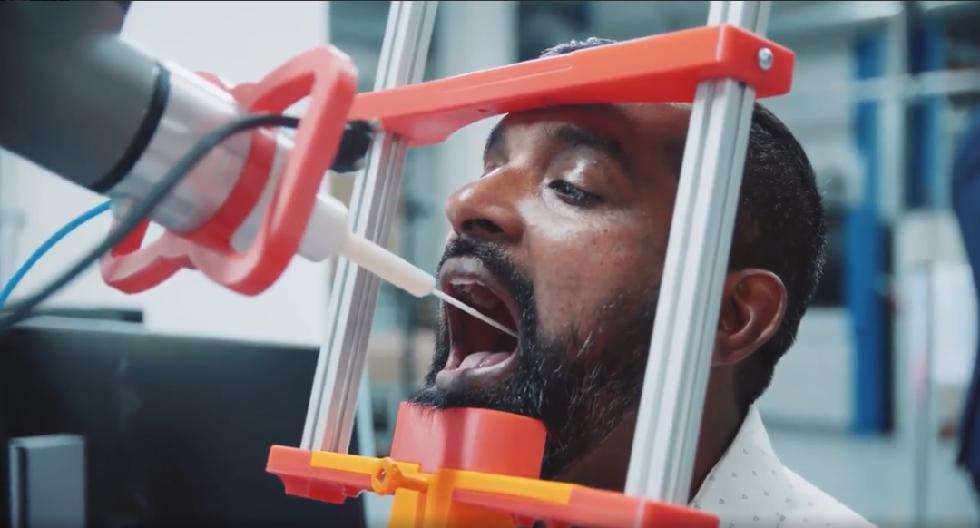該機器人由南丹麥大學的機器人技術研究人員合作開發(fā),裝配了UR3協(xié)作式機器人手臂,以及一個定制的3D打印末端執(zhí)行器。檢測的過程本身非常簡單,首先掃描病患的身份證。機器人會立刻準備一個樣品盒,其中包括一個印有身份信息標簽的容器,然后機器人拿起棉簽。它會利用內置的視覺系統(tǒng),識別出正確位置,并采集病人的咽部拭子。采集拭子過程結束,機器人會把樣本放入一個瓶子當中,然后擰上蓋子。瓶子隨后會被送到實驗室進行分析。整個過程總共需要7分鐘,而采集拭子本身只需要25秒。該系統(tǒng)于5月底在丹麥正式發(fā)布。