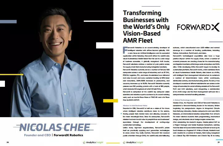 “ForwardX提供了全球唯一的視覺自主移動機器人‘艦隊’,可用于各種業(yè)務(wù)場景。作為全球公認的AMR領(lǐng)導(dǎo)者,F(xiàn)orwardX解決方案解決了從制造到物流整個供應(yīng)鏈中的許多痛點?!薄?Analytics Insight》在其長達5頁的報道中開門見山。