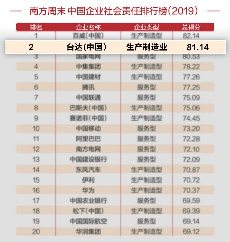 圖二 臺達(dá)首次參與“中國企業(yè)社會責(zé)任排行榜”評選即以優(yōu)秀的數(shù)據(jù)表現(xiàn)榮登榜單第二名。