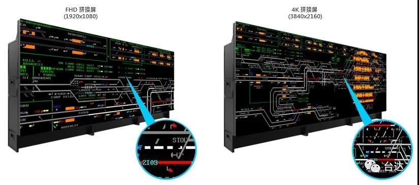 4K顯示單元的顯示范圍是高清顯示單元的4倍,畫面顯示更細(xì)致,監(jiān)控范圍更大