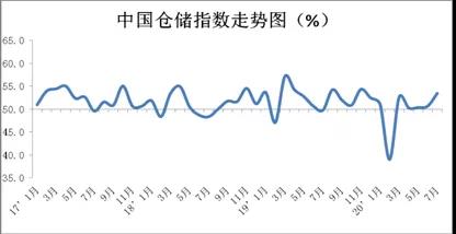 中國物流與采購聯(lián)合會(huì)發(fā)布的2020年7月份中國物流業(yè)景氣指數(shù)為50.9%,較上月回落4個(gè)百分點(diǎn);中國倉儲(chǔ)指數(shù)為53.5%,較上月回升2.8個(gè)百分點(diǎn)。