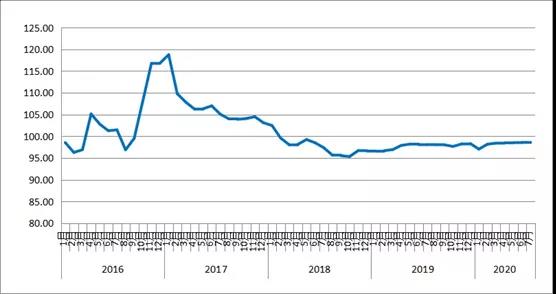2020年7月份,由中國物流與采購聯(lián)合會和林安物流集團聯(lián)合調(diào)查的中國公路物流運價指數(shù)為98.6點,與上月基本持平,比去年同期增長0.5%。從各周指數(shù)看,第一、二、三周運價指數(shù)環(huán)比小幅回落,第四、五周指數(shù)環(huán)比小幅回升。