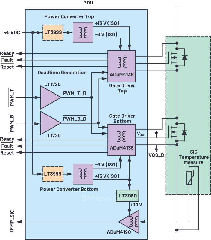 圖3. ADuM4136和LT3999柵極驅(qū)動(dòng)器單元