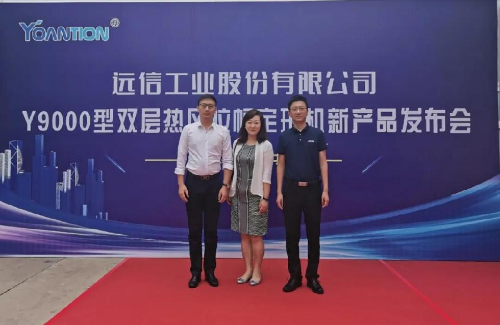 8月9日上午,遠信工業(yè)股份有限公司“Y9000型雙層熱風(fēng)拉幅定型機新產(chǎn)品發(fā)布會”在山東諸城億華針織有限公司生產(chǎn)現(xiàn)場舉辦,遠信工業(yè)總經(jīng)理陳少軍、中國紡織機械協(xié)會會長顧平、中國印染行業(yè)協(xié)會副會長林琳、遠信相關(guān)部門負責(zé)人以及數(shù)十家印染企業(yè)負責(zé)人、行業(yè)重要媒體記者等出席活動,倫茨也受邀參加了此次遠信新品發(fā)布會。