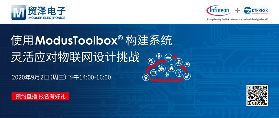 專注于引入新品推動(dòng)行業(yè)創(chuàng)新的電子元器件分銷(xiāo)商貿(mào)澤電子 (Mouser Electronics) 宣布將聯(lián)合Cypress分別于9月2日和9月15日下午14:00-16:00舉辦主題為“使用ModusToolbox?構(gòu)建系統(tǒng),靈活應(yīng)對(duì)物聯(lián)網(wǎng)設(shè)計(jì)挑戰(zhàn)”的直播課程。期間,特邀來(lái)自Cypress的技術(shù)專家將向觀眾著重介紹如何在ModusToolbox?軟件中創(chuàng)建GNU make build 構(gòu)建系統(tǒng),以及該系統(tǒng)如何為IoT開(kāi)發(fā)者帶來(lái)持續(xù)的集成、靈活性和便利性。 ModusToolbox?套件為業(yè)內(nèi)主流開(kāi)源物聯(lián)網(wǎng)平臺(tái)所支持的設(shè)備到云端應(yīng)用開(kāi)發(fā)提供全程支持,這一技術(shù)將推動(dòng)開(kāi)發(fā)者更快地將差異化的物聯(lián)網(wǎng)產(chǎn)品推向市場(chǎng)。