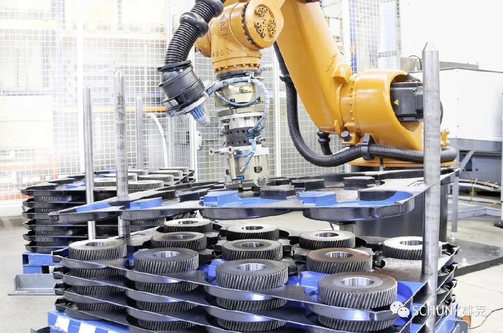 齒輪在車削時(shí),由雄克ROTA NCF plus 2動力卡盤確保恒定的夾緊力和硬加工齒輪時(shí)的高精度。齒輪由多齒導(dǎo)軌定心機(jī)械手PZN-plus完成車床上下料。