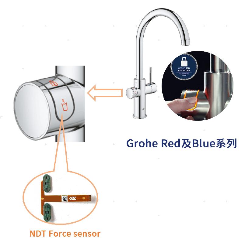 Eric Ren(NDT市場(chǎng)銷(xiāo)售副總裁)表示:“隨著生活品質(zhì)的提高,消費(fèi)者對(duì)于高端家用電器的購(gòu)買(mǎi)需求不斷增加,例如洗碗機(jī)的市場(chǎng)滲透率正在逐年提升。在這樣一個(gè)需要防水、防油、防污的高頻次使用場(chǎng)景下,實(shí)體按鍵、電容觸控等并非理想之選。針對(duì)這些痛點(diǎn),NDT推出的新一代通用型MSK壓感觸控方案,通過(guò)貼合于控制面板的背面,可簡(jiǎn)單、直接地實(shí)現(xiàn)高準(zhǔn)確率的觸控交互指令識(shí)別。NDT不僅能夠幫助客戶打造一體化、人性化的產(chǎn)品設(shè)計(jì),提升終端產(chǎn)品的市場(chǎng)競(jìng)爭(zhēng)力;同時(shí),NDT創(chuàng)新的人機(jī)交互技術(shù)也使得人們的生活方式更加便捷、輕松?!?BR>目前,NDT通用型MSK壓感觸控方案已在老板電器的油煙機(jī)以及高儀(Grohe)的壓感童鎖開(kāi)關(guān)水龍頭上實(shí)現(xiàn)落地應(yīng)用,廣受消費(fèi)者好評(píng)。其中,高儀壓感童鎖水龍頭方案將NDT MSK壓感模塊貼合于水龍頭開(kāi)關(guān)按鈕的內(nèi)壁,可有效檢測(cè)用戶不同力度的按壓操作,通過(guò)壓力分級(jí)與長(zhǎng)按、短按操作方式的結(jié)合實(shí)現(xiàn)童鎖開(kāi)關(guān)功能,能夠有效地避免兒童誤觸造成燙傷等問(wèn)題,同時(shí)支持帶水操作以及擁有長(zhǎng)久使用壽命。