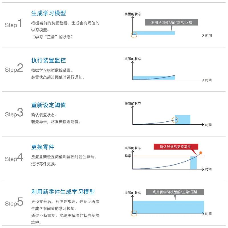 精髓,就在于如何得出這個預(yù)測值?一方面,我們需要采集以往熟練保養(yǎng)人員對于設(shè)備故障的判斷依據(jù),利用AI的自學習功能,生成學習模型,設(shè)定閾值。