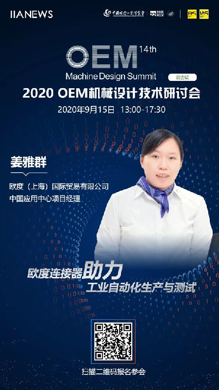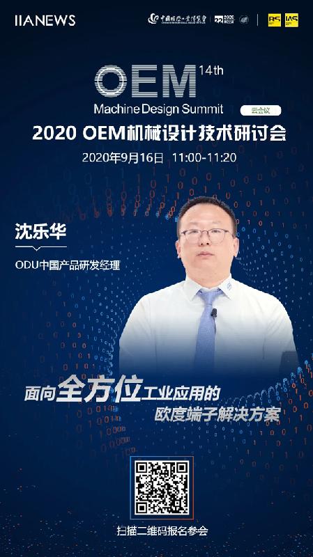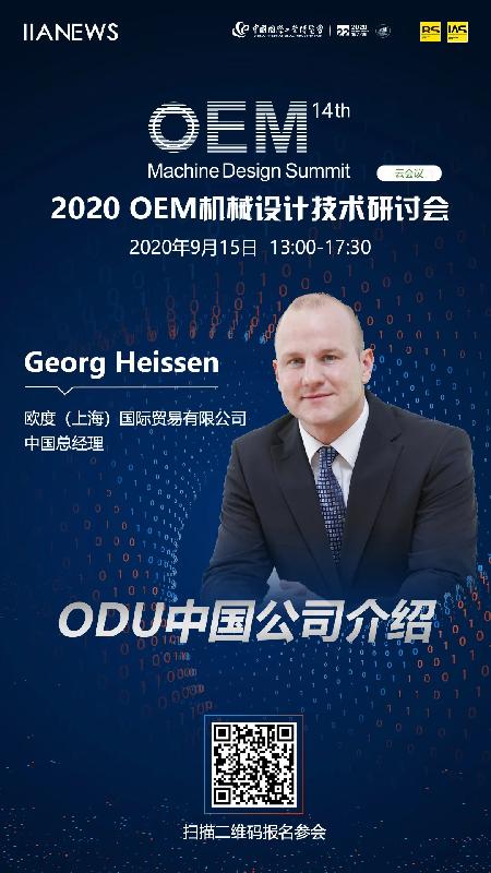 2020年9月15日-9月16日,ODU中國總經(jīng)理Georg Heissen、ODU中國應(yīng)用中心項目經(jīng)理姜雅群、ODU中國產(chǎn)品研發(fā)經(jīng)理沈樂華將分別為大家?guī)怼禣DU中國公司介紹》、《歐度連接器助力工業(yè)自動化生產(chǎn)與測試》、《面向全方位工業(yè)應(yīng)用的歐度端子解決方案》的主題演講。