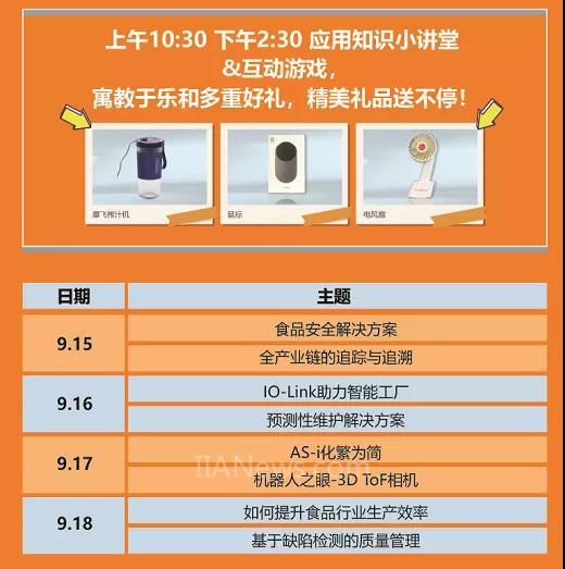 沒(méi)來(lái)得及參加的觀眾們也不用擔(dān)心,直至9月18日,在5.1館D013 ifm 展臺(tái),每天10:30-11:00及14:30-15:00,都有應(yīng)用講堂、現(xiàn)場(chǎng)互動(dòng)及多重好禮等著你!