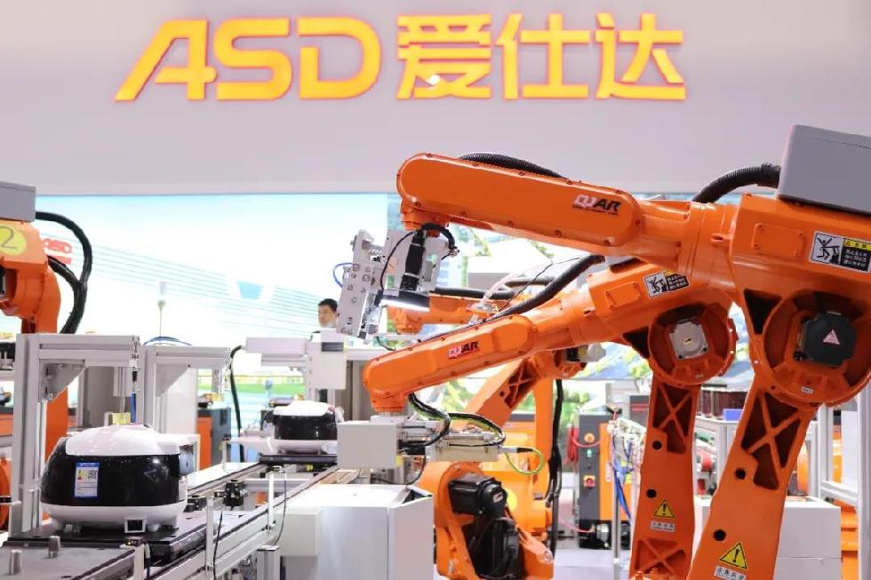 在7號展館“人機協(xié)作、智聯(lián)未來”機器人展區(qū),愛仕達(002403.SZ)集結(jié)錢江機器人、索魯馨、上海三佑、上海松盛聯(lián)合亮相,展示了愛仕達工業(yè)互聯(lián)網(wǎng)+5G平臺、錢江機器人遠(yuǎn)程運維與監(jiān)控等產(chǎn)品、技術(shù)與解決方案。