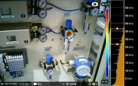 Fluke聲學(xué)成像儀可以設(shè)置頻段,泄漏點(diǎn)的頻率一般在20kHz以上,處于超聲波范圍;而噪聲小于20kHz,準(zhǔn)確設(shè)置泄漏的頻段,兩者是互不干擾的,ii900的觸摸屏可以方便地進(jìn)行頻段范圍和位置的調(diào)整。
