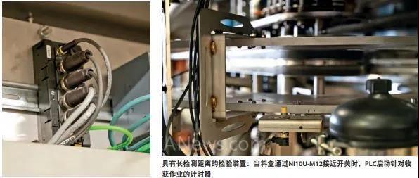 控制器不僅需要所選蘆筍的坐標(biāo)來(lái)微調(diào)收獲過(guò)程,還需關(guān)于模塊位置和移動(dòng)的連續(xù)信息流。首先它會(huì)查詢(xún)當(dāng)前緩存區(qū)中有多少個(gè)料盒,例如有多少個(gè)處于停留位置等,然后當(dāng)前檢測(cè)到蘆筍的盒子會(huì)被回路檢測(cè)到。對(duì)此,AvL使用小型的BI3-M08K電感式傳感器進(jìn)行檢測(cè)。而對(duì)收獲模塊的精確識(shí)別則通過(guò)RFID技術(shù)實(shí)現(xiàn),即圖爾克TN-Q14 HF讀寫(xiě)頭,該讀寫(xiě)頭可以讀取每個(gè)料盒上的獨(dú)特編碼。此外,位置檢測(cè)通過(guò)旋轉(zhuǎn)編碼器實(shí)現(xiàn)。“該編碼器在緩存區(qū)中旋轉(zhuǎn)??梢灾甘玖虾形挥?0 mm還是30mm高度。”AvL研發(fā)員Hutjens解釋道。一旦收獲機(jī)啟動(dòng)回路,料盒就會(huì)通過(guò)NI10U-M12 uprox接近開(kāi)關(guān),這將觸發(fā)PLC啟動(dòng)針對(duì)收獲過(guò)程的計(jì)時(shí)器的運(yùn)行。為了在機(jī)器運(yùn)動(dòng)時(shí)同步料盒的運(yùn)動(dòng),需要進(jìn)行這種多層次的準(zhǔn)備工作。