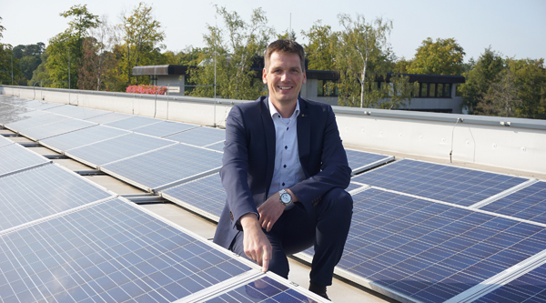 浩亭大力發(fā)展光伏發(fā)電:圖為中央質量技術部經理斯蒂芬·米德爾卡姆博士在埃斯佩爾坎普的浩亭質量技術中心(HQT)的屋頂上。