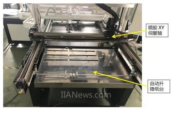 噴膠工站由自動升降紙臺和噴膠XY軸組成。