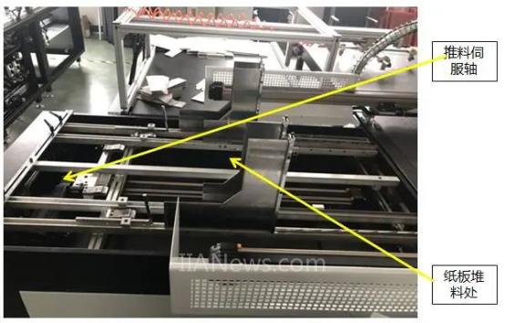 前后推料工站功能:將待組裝的紙板推送到取料位置,等待取板。