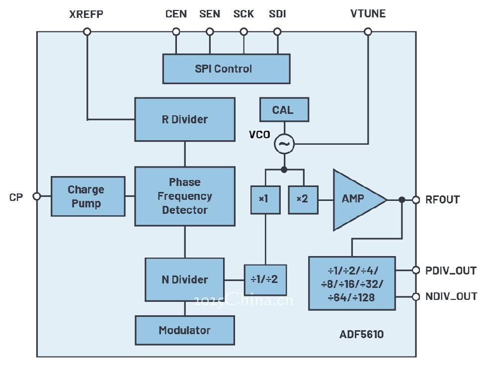 ADF5610具備行業(yè)領(lǐng)先的頻率覆蓋范圍、出色的相位噪聲性能、高輸出功率、低功耗和小尺寸,因此能夠滿足新通信和儀器儀表系統(tǒng)的嚴苛要求。