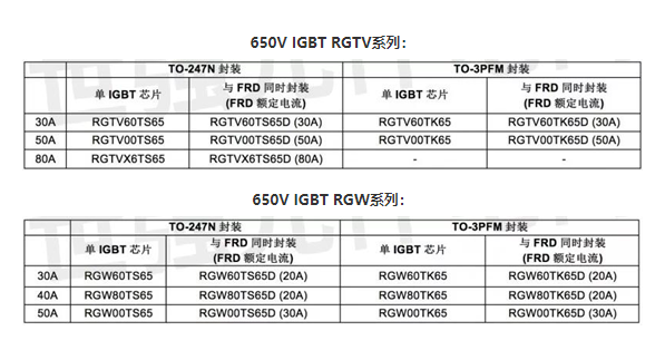 650V IGBT RGTV和RGW產(chǎn)品系列