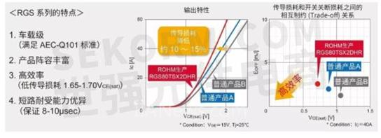 尤其是在電動(dòng)壓縮機(jī)和PTC加熱器中,由于驅(qū)動(dòng)頻率較低,故對(duì)傳導(dǎo)損耗的重視程度高于開(kāi)關(guān)特性,RGS系列的出色表現(xiàn)已經(jīng)獲得客戶的高度好評(píng)。