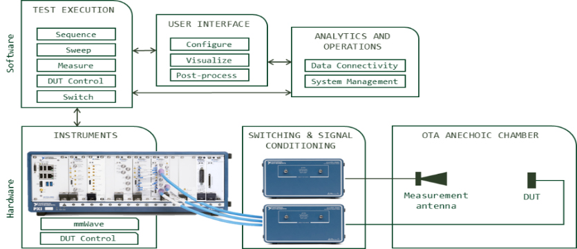 毫米波頻段為5G通信提供了更豐富的頻段資源和更大的帶寬,可以實(shí)現(xiàn)極低時(shí)延。由于毫米波波長(zhǎng)短,天線尺寸極小,無(wú)法繼續(xù)通過(guò)傳導(dǎo)方式測(cè)試,只能使用OTA(Over the Air)的方法進(jìn)行測(cè)試。NI提供了完整的測(cè)試解決方案,包括軟件、硬件及安裝調(diào)試校準(zhǔn)服務(wù)。支持毫米波天線、終端、基站的OTA射頻測(cè)試。