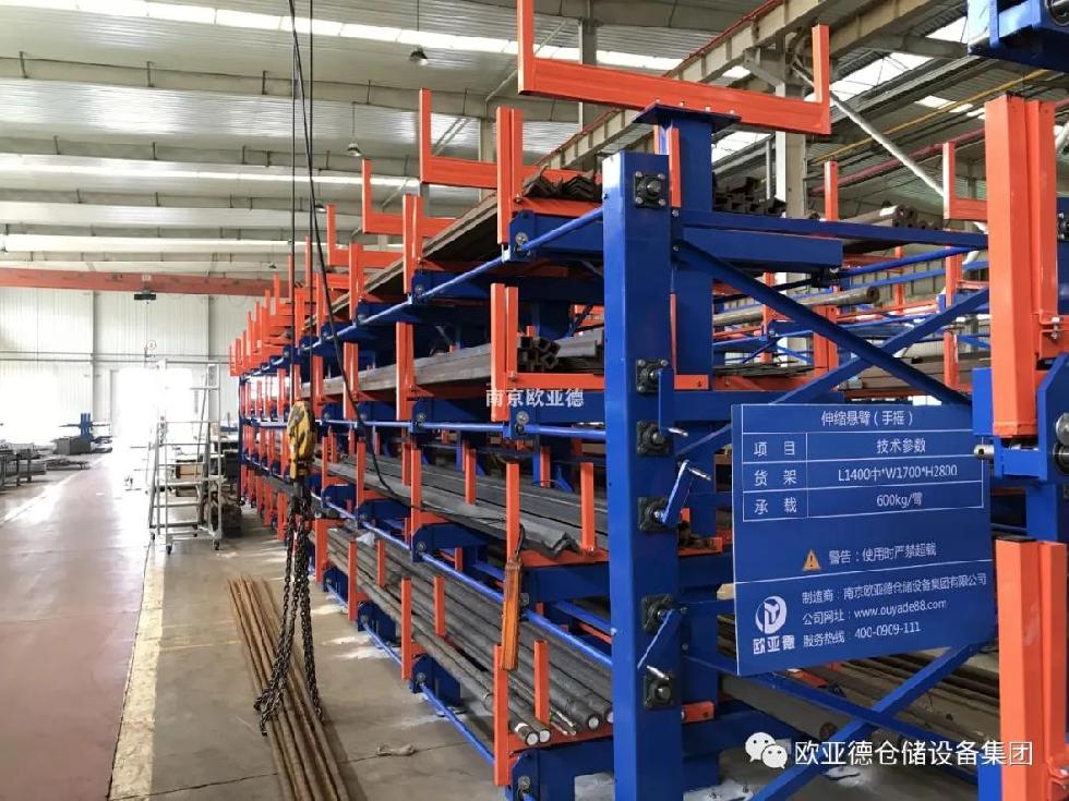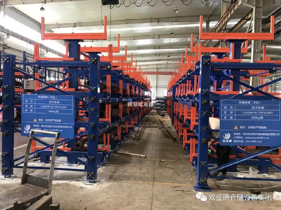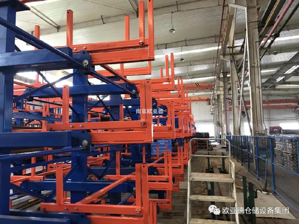 近日,安徽某大型叉車公司伸縮式懸臂貨架項目順利完工并投入使用,客戶選擇歐亞德伸縮式懸臂貨架存儲鋼材等原材料產品。