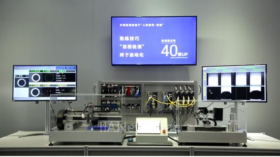 我們先來觀看左邊的部品組裝工藝展示,可以發(fā)現(xiàn)以往的檢查方式,會有很明顯的停頓。整體的拍攝時間冗長,再加之后續(xù)的畫像處理和對位組裝,生產(chǎn)節(jié)拍將大幅延緩。