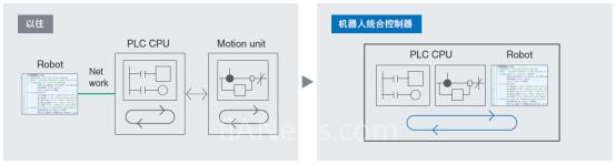 作為具有完全不同特性的控制引擎,一直以來都是獨(dú)立執(zhí)行PLC的循環(huán)掃描型程序和機(jī)器人的順序執(zhí)行型程序。