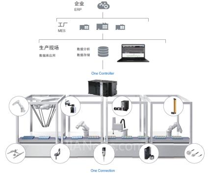 將機(jī)順序、運(yùn)動(dòng)、機(jī)器人控制整合至One Controller中,可以對包括機(jī)器人在內(nèi)的每個(gè)設(shè)備執(zhí)行同步控制,并收集與每個(gè)設(shè)備的時(shí)間軸匹配的“可用”信息。