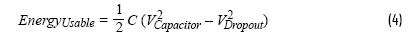 采用前面的電容電能計算方法,減去低于VDropout時無法獲取的電能,可以得到: