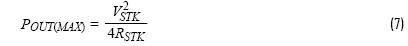 為了計算最大的功率傳輸,我們可以對前一個公式求導,求出它為零時的條件。RSTK = RLOAD時就是這種情況。