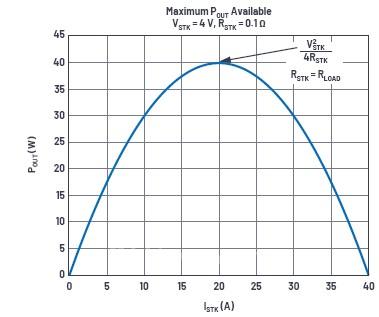 這也可以直觀地理解。也就是說,如果負載電阻大于源電阻,由于總電路電阻增大,負載功率會降低。同樣,如果負載電阻低于源電阻,則由于總電阻降低,大部分功耗在電容源內(nèi);類似的,負載中消耗的功率也降低。因此,對于給定的電容電壓和給定的堆棧電阻(超級電容的ESR),當源阻抗和負載阻抗匹配時,可傳輸功率最大。