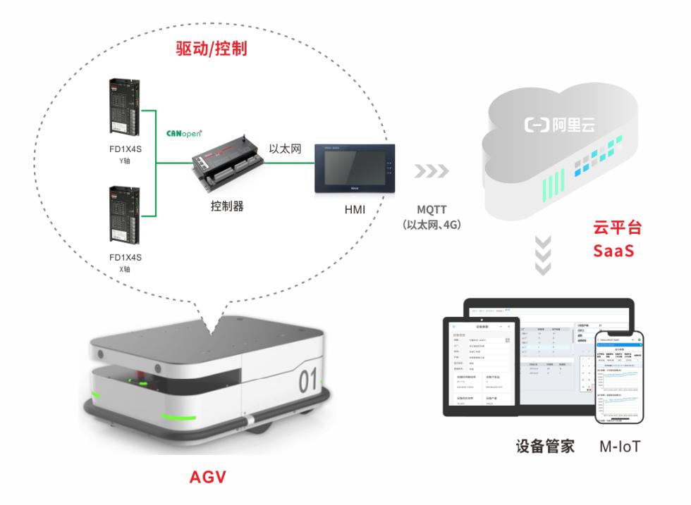 作為步科最具人氣的AGV運動控制方案,該方案主要由青龍1號、低壓伺服驅(qū)動器、物聯(lián)型HMI等部件組成,具有遠(yuǎn)程監(jiān)控、穩(wěn)定可靠、高效運行等功能特點,能有效降低運維管理成本。